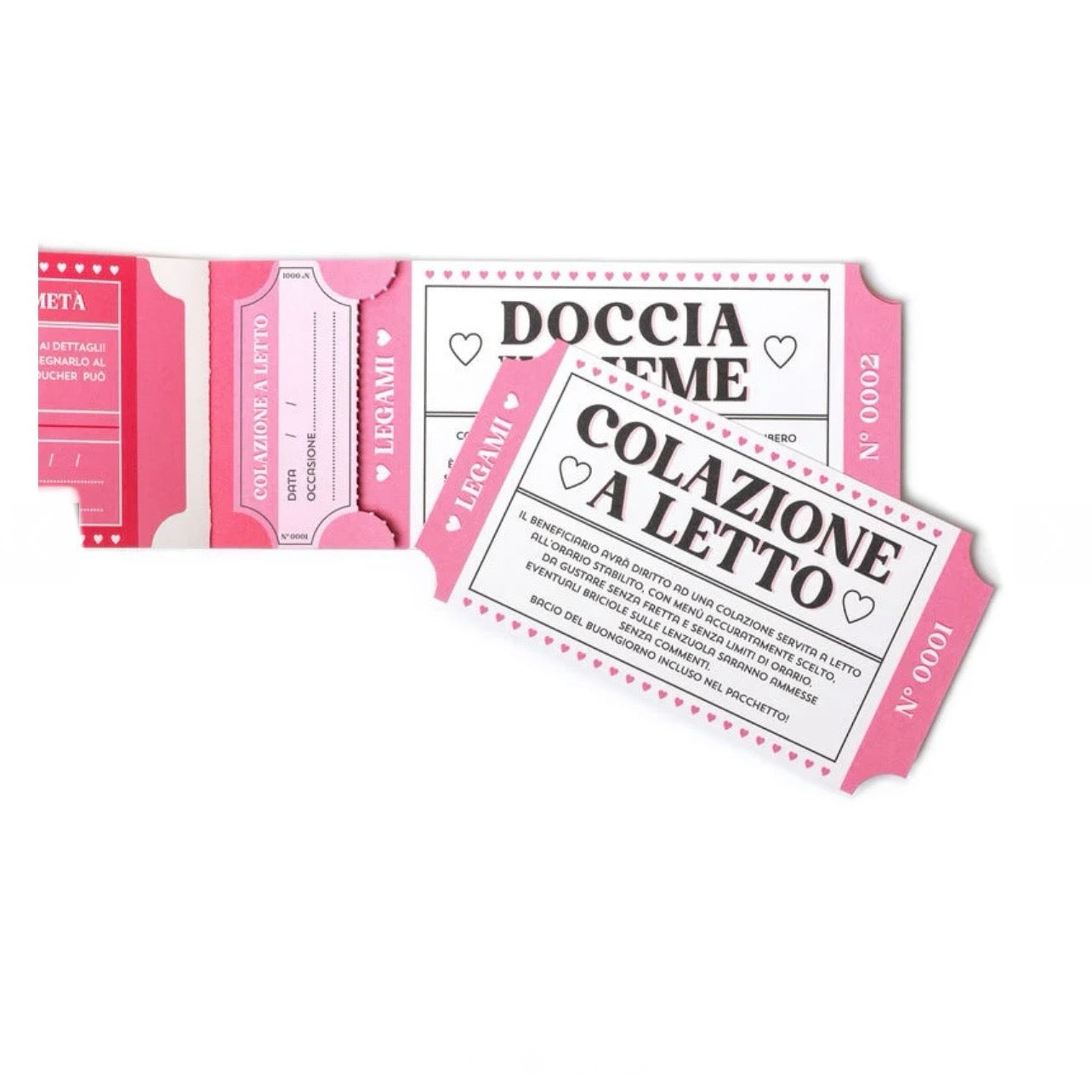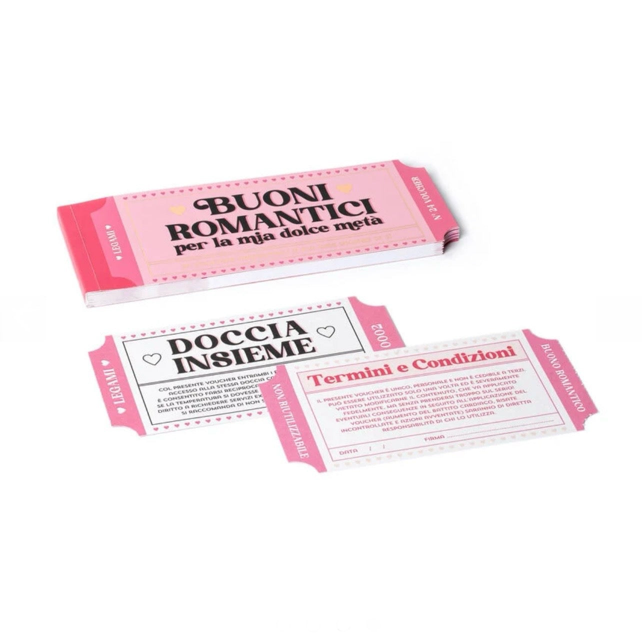 I buoni romantici di Legami sono un blocchetto di 24 voucher per regalare al partner momenti unici e super romantici che potrà riscattare quando vorrà. Ogni volta che vorrà un regalo potrà scegliere tra una delle frasi suggerite da noi o tra quelle aggiunte da te nei due buoni da personalizzare. Un regalo veramente unico per un San Valentino che durerà nel tempo!