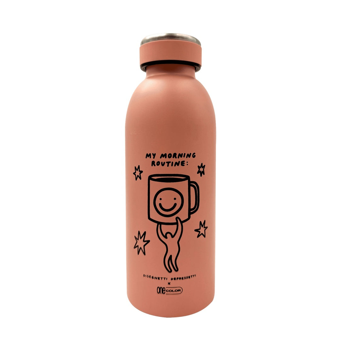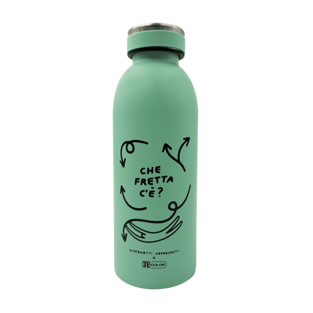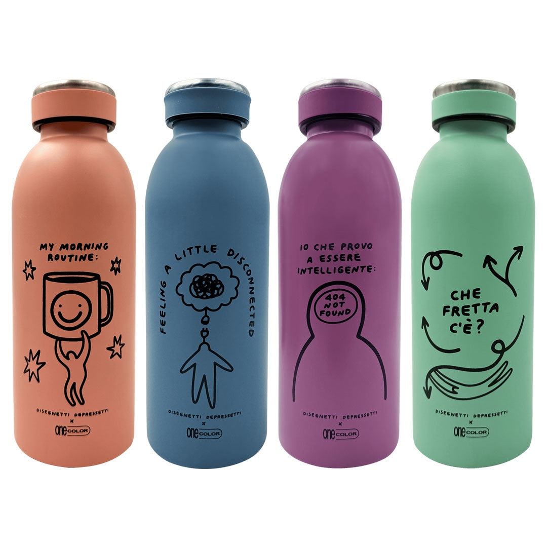 La Borraccia Termica Disegnetti Depressetti 2025 è realizzata in acciaio inox 304, con una capienza di 500 ml e una doppia parete isolante che mantiene le bevande calde o fredde per 12 ore. Senza BPA e progettata per uso alimentare, è disponibile in nuove forme, colori e grafiche esclusive per il 2025.