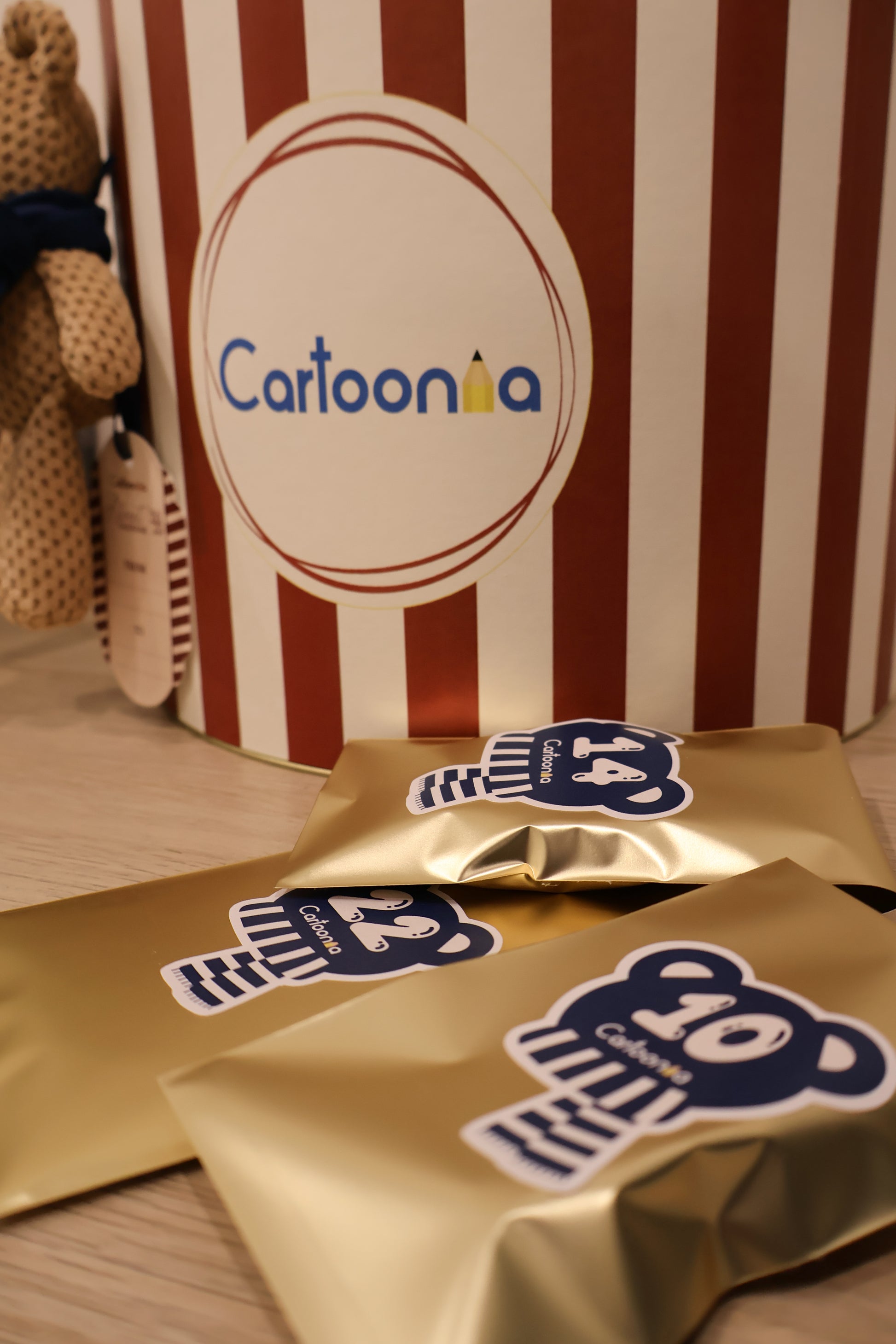 ♥️ La nostra elegante scatola a righe, decorata con il tenero orsetto Cartoonia, è già di per sé un regalo che emoziona. Perfetta da tenere sulla scrivania o da regalare a chi ami.