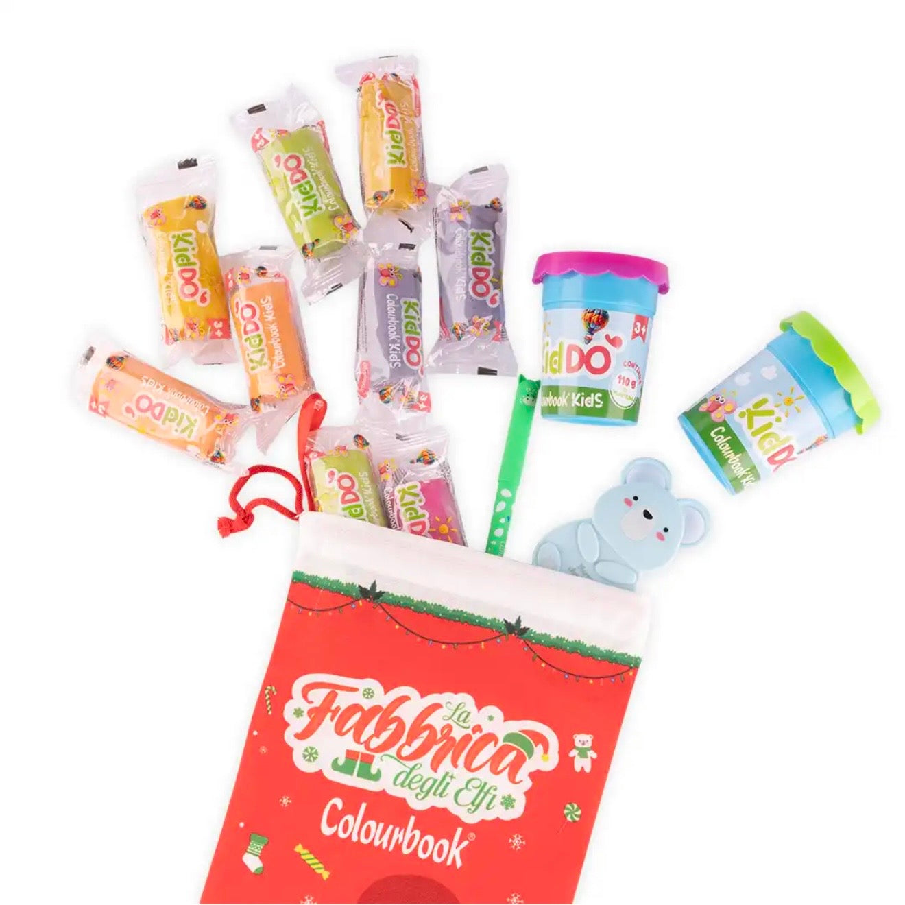 Un classico che non può mancare a Natale. La Calza “La Fabbrica degli Elfi”, in tessuto e decorata con i simpatici personaggi della linea, racchiude 9 salsicciotti di plastilina, 2 vasetti di plastilina e 2 gadget a sorpresa.