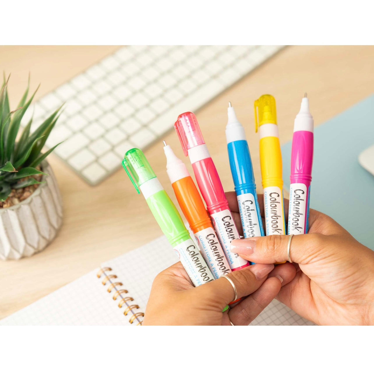 Ami le tonalità fluo? I correttori a penna Colourbook Fluo con punta in metallo e fusto colorato da 7 ml sono quello che fa per te.