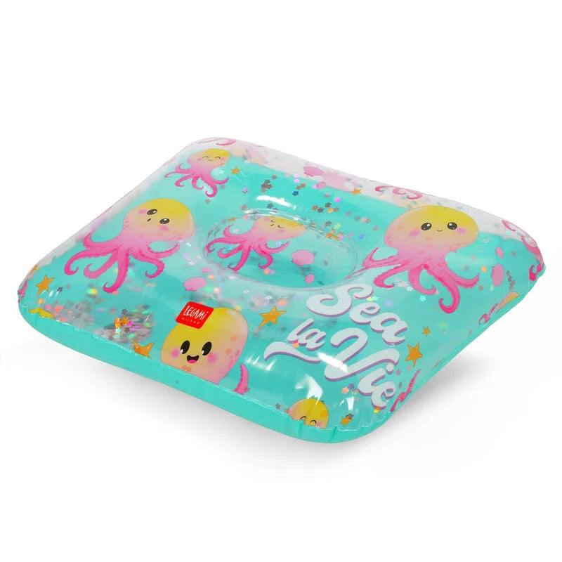 Anche tu quando vai in vacanza non sai mai dove hai la testa? Appoggiala sul morbido Cuscino Gonfiabile di Legami. Che tu sia al mare, in piscina o in campeggio, sarà sempre lì per darti sostegno e i glitter colorati al suo interno renderanno la giornata ancora più scintillante.