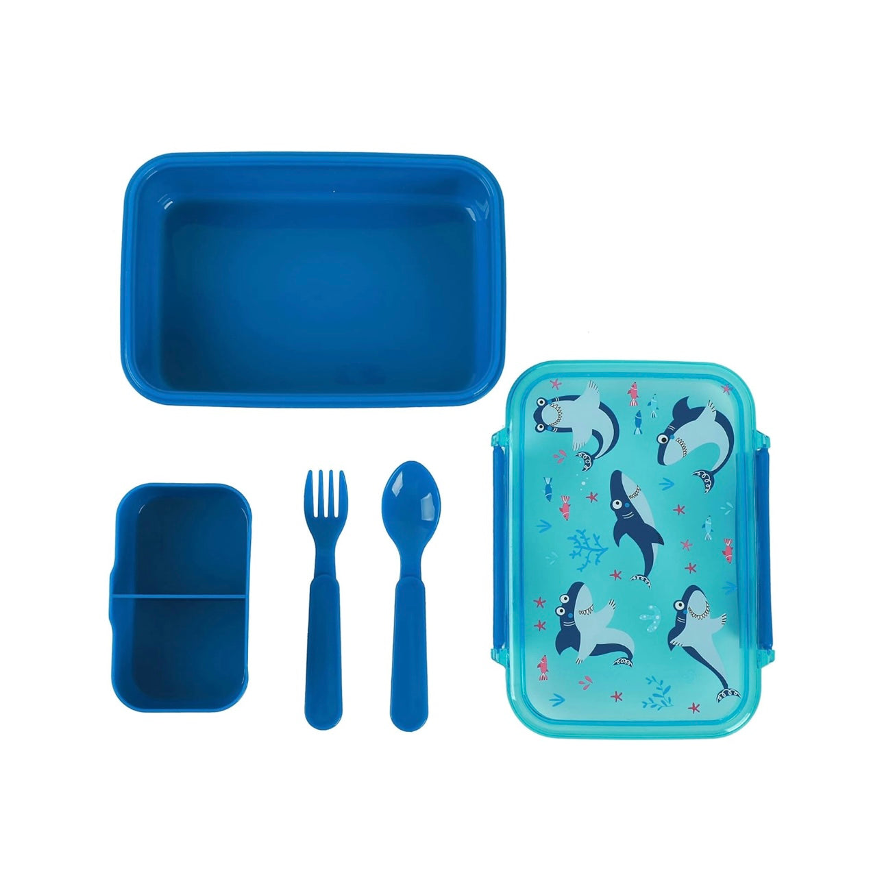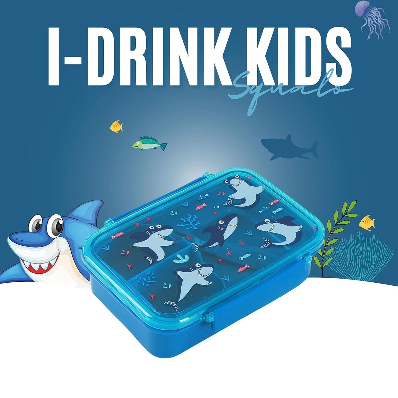IDRINK®- Lunch box con divisorio, forchetta e cucchiaio Shark