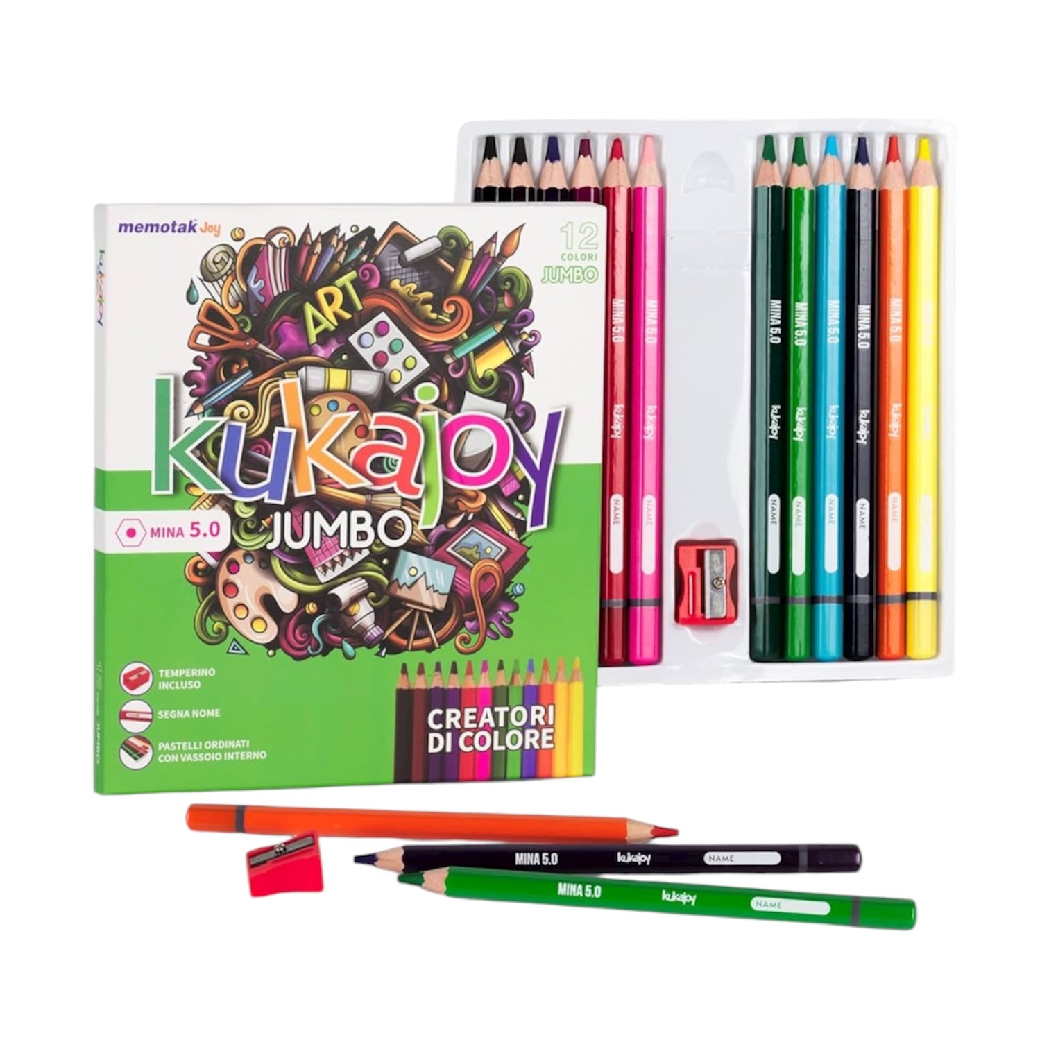 Pastelli Kukajoy a 12 Jumbo Mina 5 mm. Pastelli per Bambini e Adulti, Ideali per Disegnare e Colorare, Scrittura Morbida, Colori Assortiti