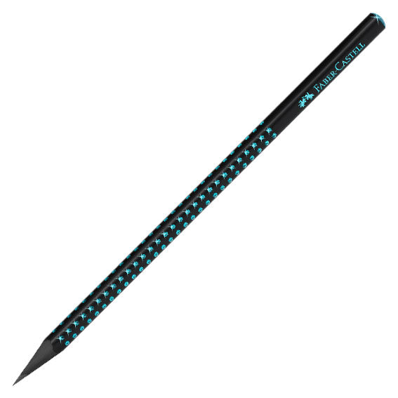 Matite di grafite con sezione ergonomica triangolare, mina del legno nera e con effetti glitter scintillanti sul fustoe fondello glitterato. mina da 2.5 mm, resistente alla rottura grazie al sistema sv, legno certificato fsc, made ingermany.