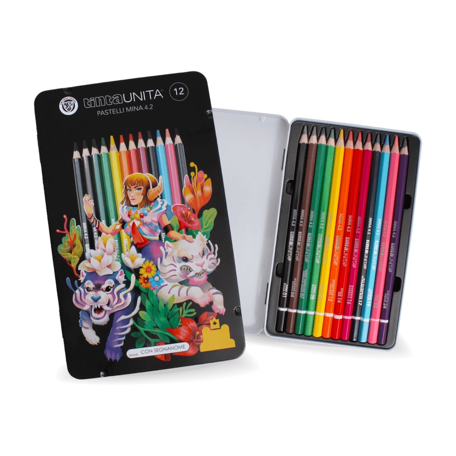 All’interno troverai i pastelli colorati tintaUNITA mina 4.2, caratterizzati da: