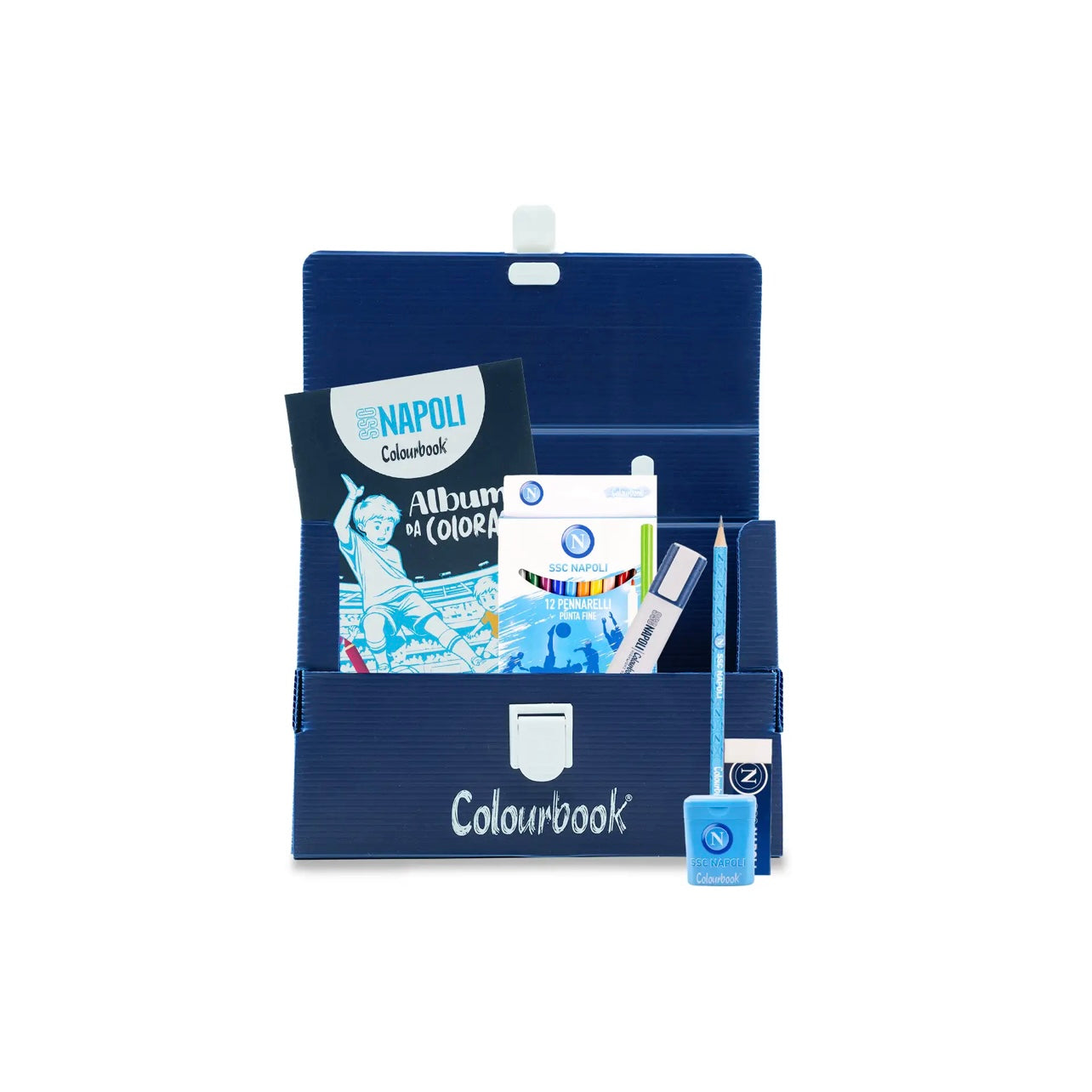 La Minipoly SSC Napoli by Colourbook è molto più di una semplice mini valigetta scuola. Al suo interno articoli di cancelleria, utili per tutto l’anno scolastico.