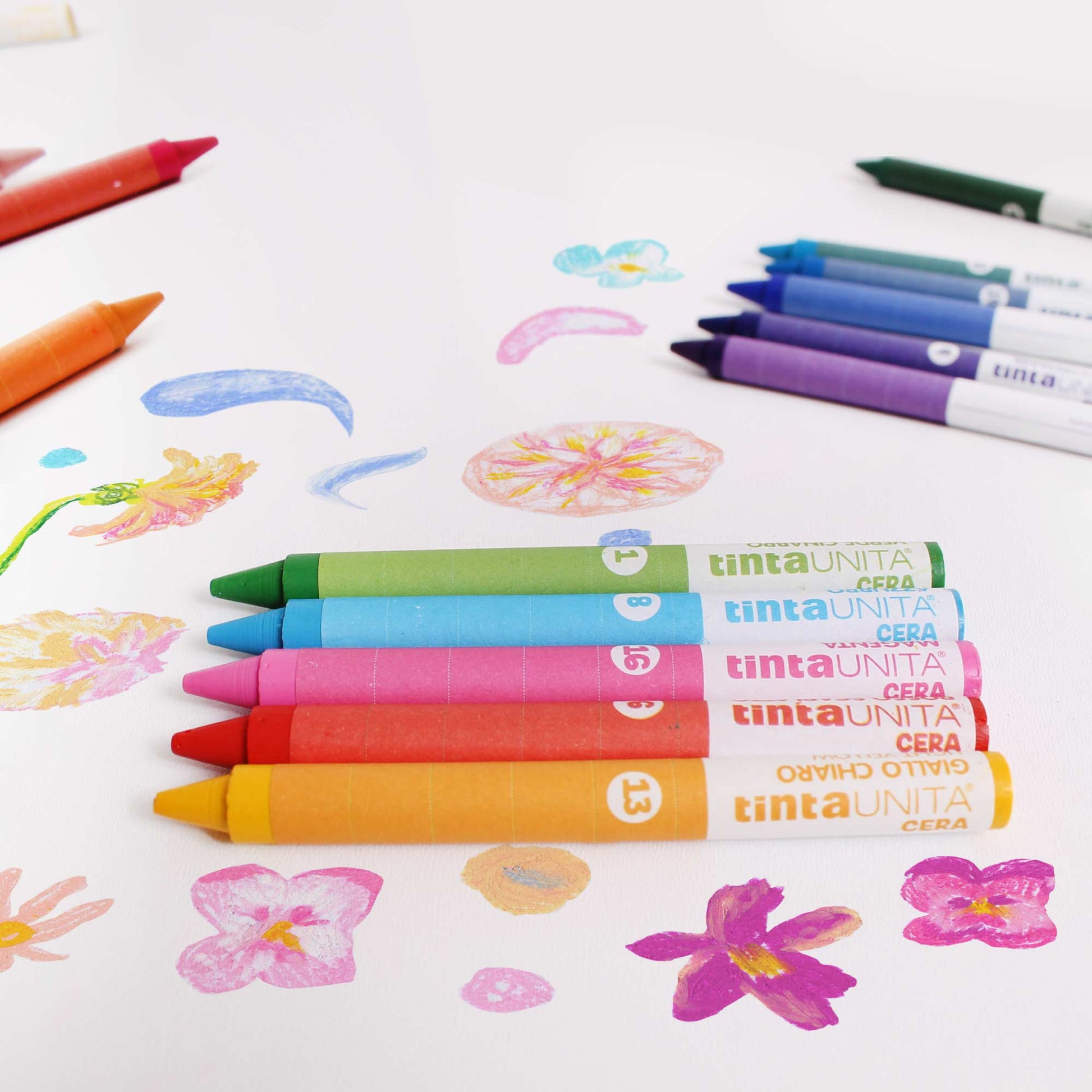 Pastelli dai colori morbidi e brillanti per i vostri disegni a cera.