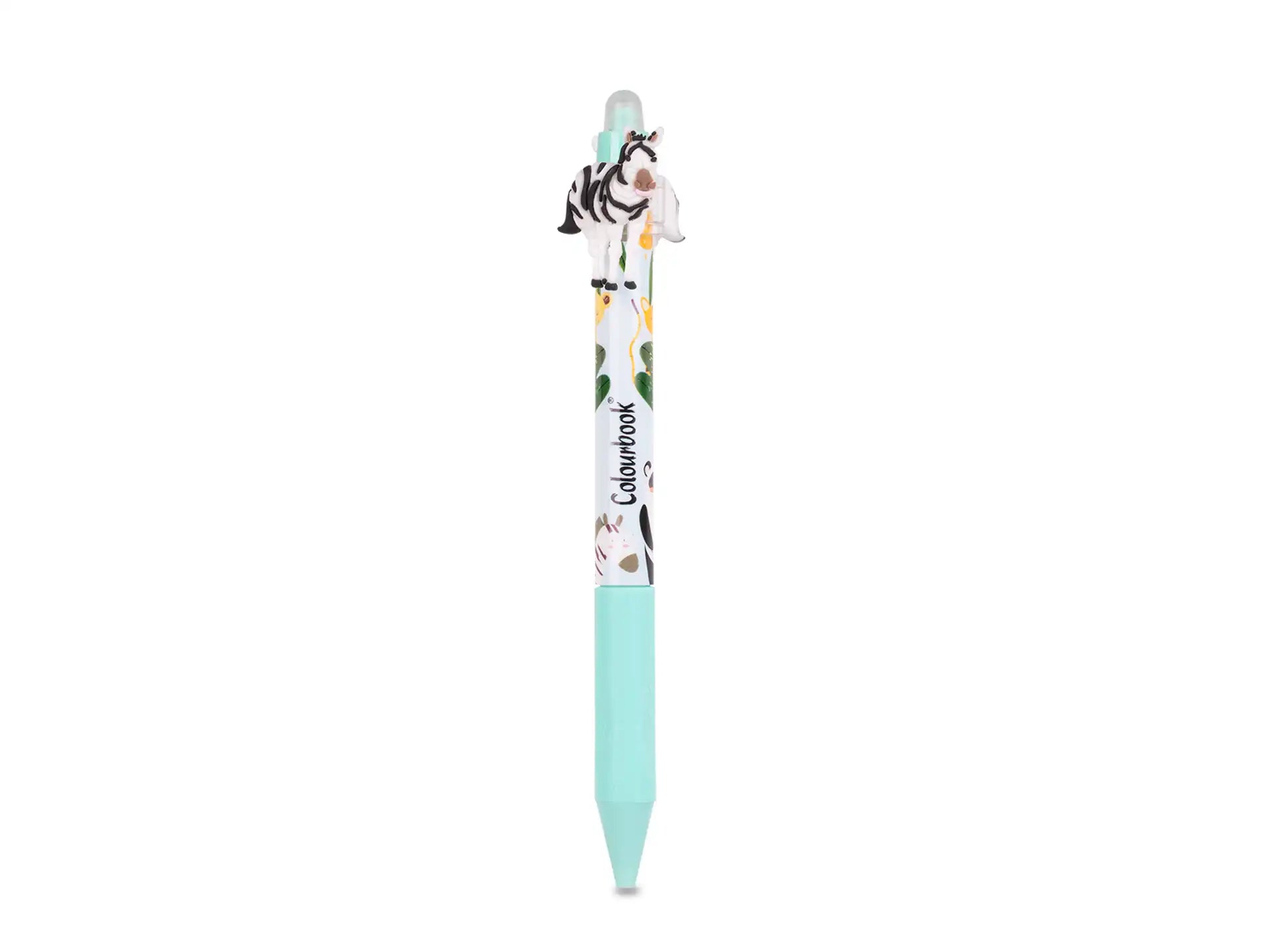 La Twist Pen è la penna gel con inchiostro blu cancellabile grazie alla pratica gommina posta all'estremità superiore. Il topper sagomato a forma di simpatici animaletti – tigre, panda, leopardo e zebra – rende il momento dello studio più piacevole e divertente!