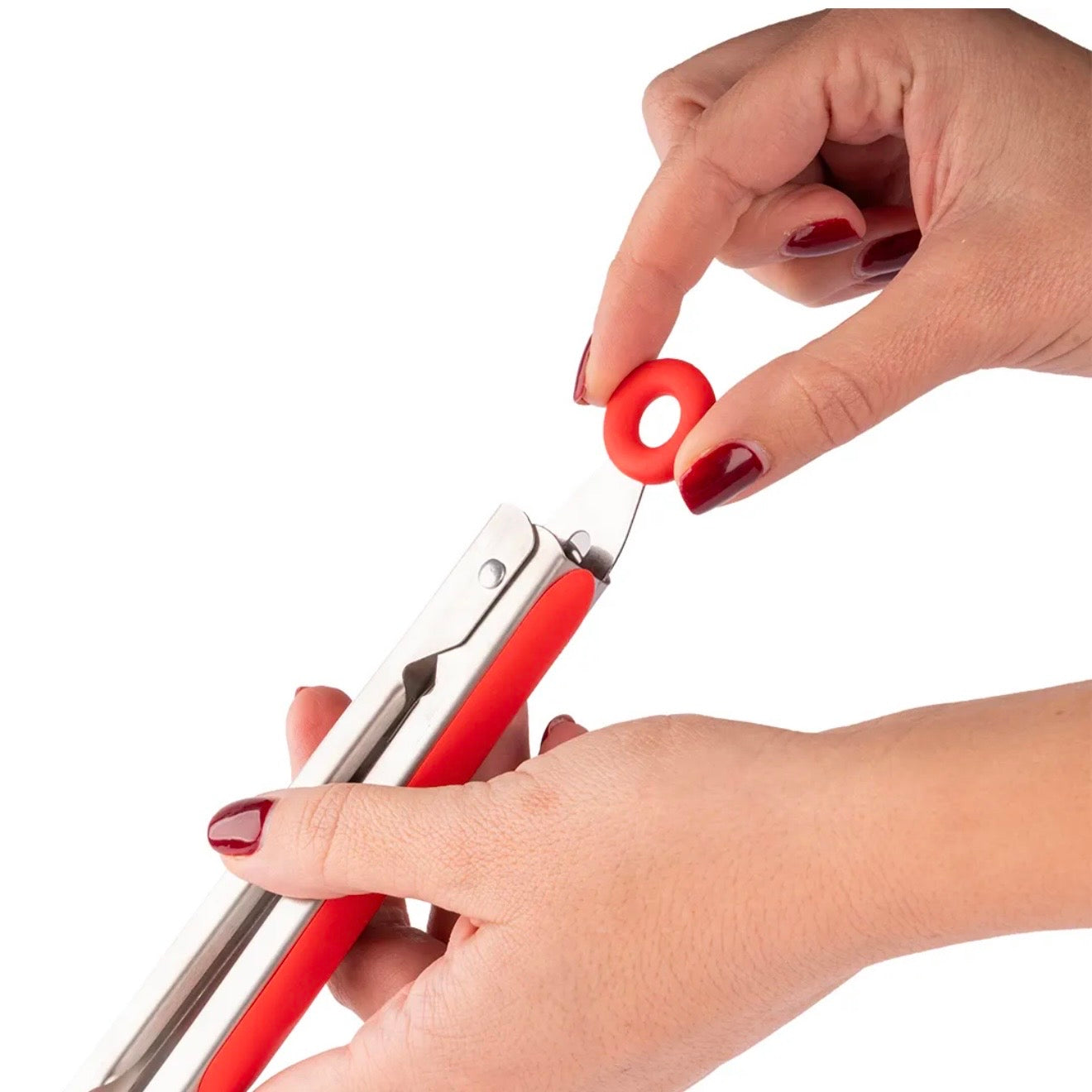 Colorata, pratica e festosa: la pinza per alimenti Colourbook è realizzata in acciaio inox e silicone con impugnatura antiscottatura e meccanismo salvaspazio.