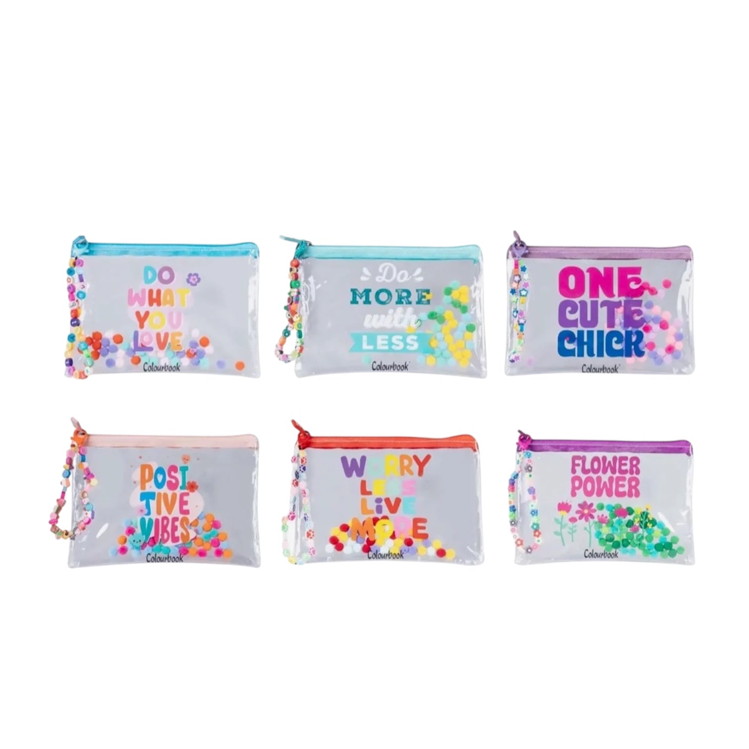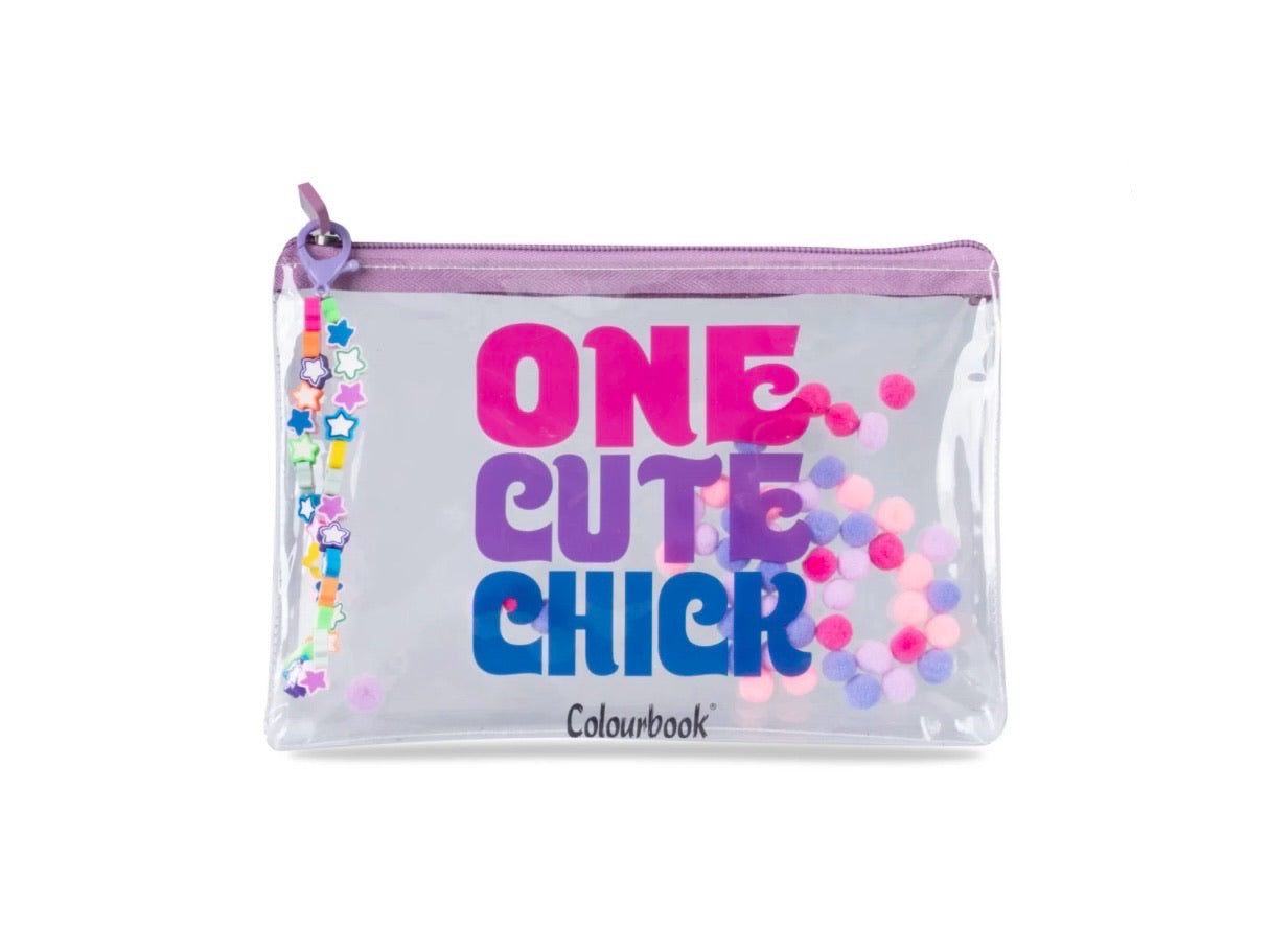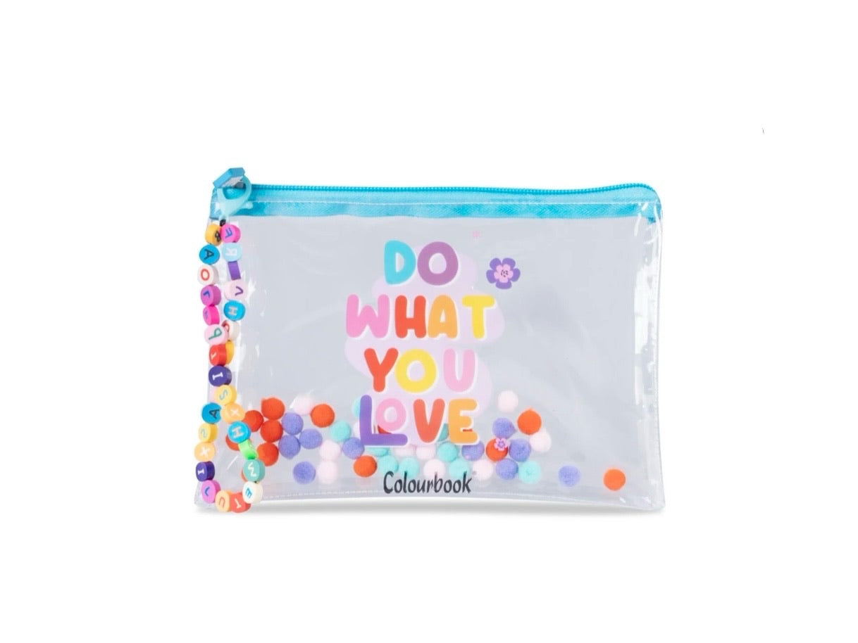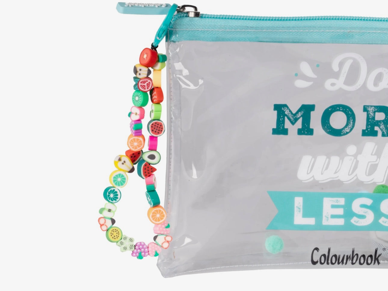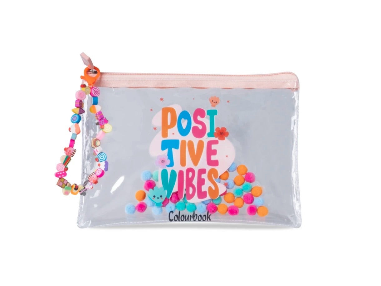 È la Soft Bubble, la borsetta Colourbook trasparente per bambini con scritta, con bolle colorate all'interno e laccetto decorativo abbinato!
