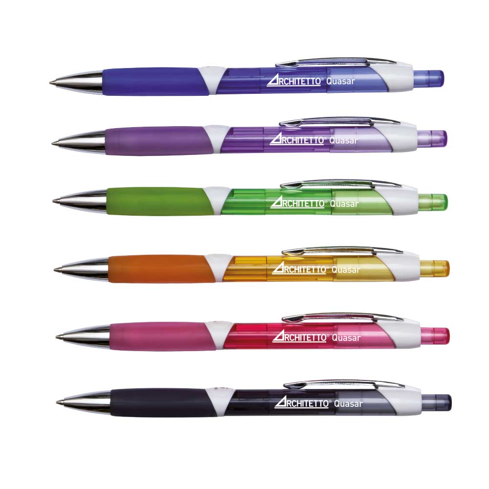 Portamine con fusto trasparente e grip gommato. Mina ad avanzamento automatico da 0,5 mm.
