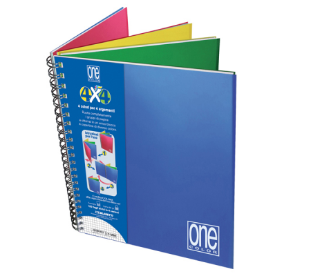 Carta 80 gr, 120 fogli, rifinito con spirale, 4 sezioni per 4 argomenti