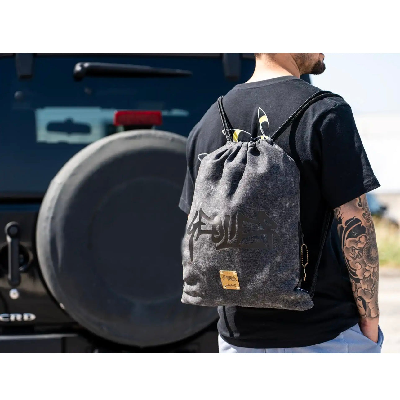La sacca con coulisse Geolier Black Denim è l’accessorio perfetto per il tuo tempo libero: un pomeriggio di studi, una giornata di sport o… il concerto del tuo artista del cuore.