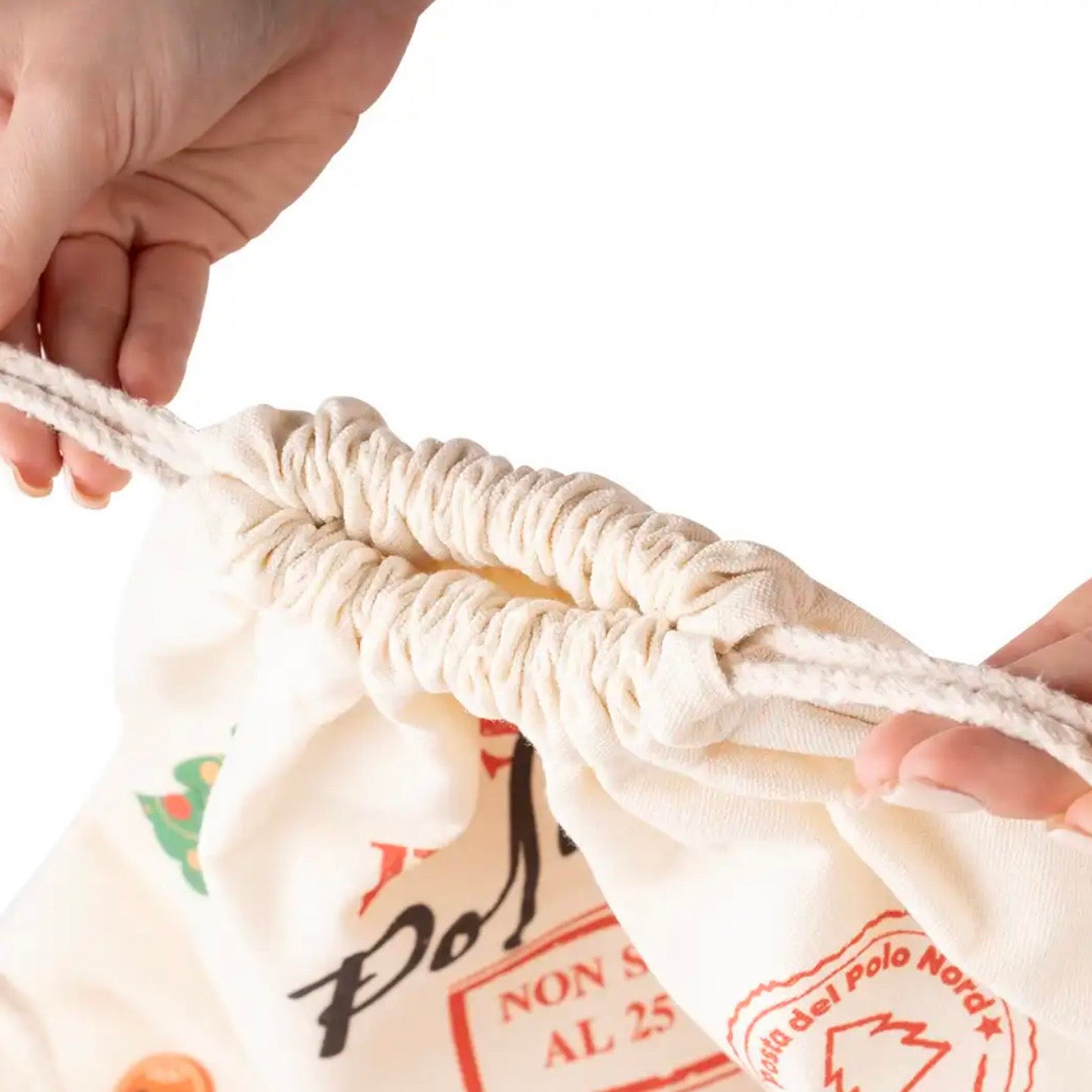 Realizzato in cotone e poliestere, con chiusura a coulisse e capienza fino a 8 kg, è l’accessorio ideale per raccogliere doni, sorprese e biglietti pieni di magia. Riutilizzabile e decorativo, porta un tocco di autenticità sotto l’albero.