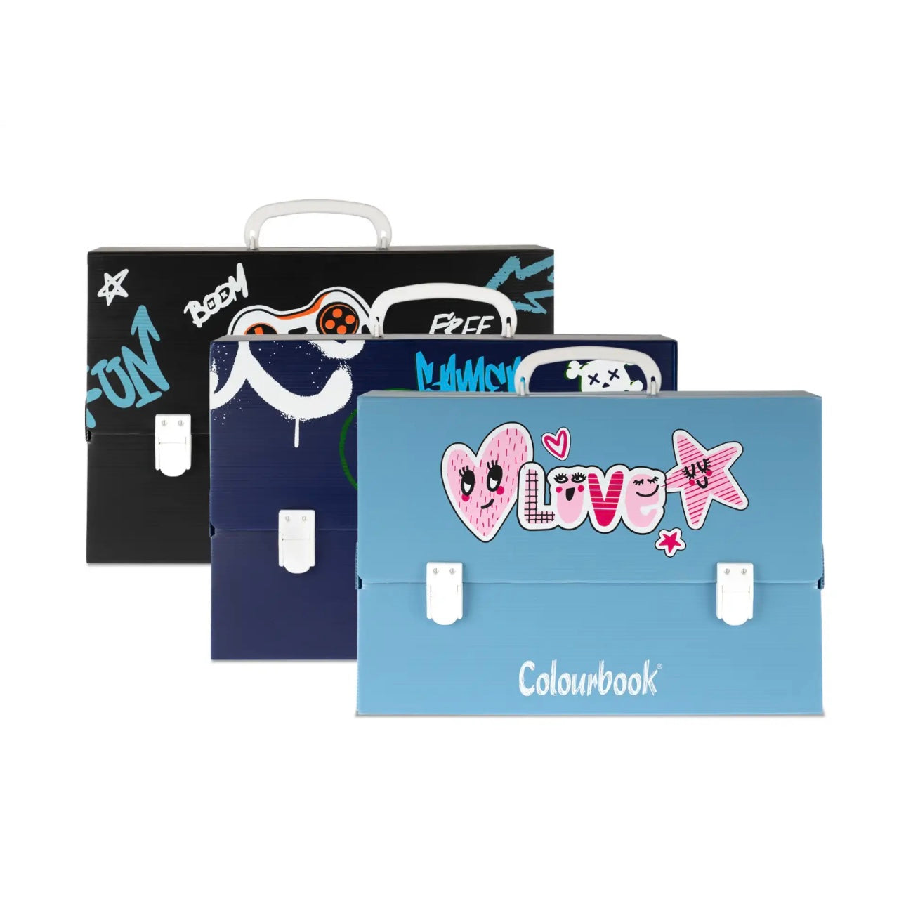 Realizzate in Italia, le valigette portadisegniAbstract sono realizzate in formato 38 x 27 x 8 cm, ideali per archiviare documenti, disegni e progetti in modo pratico e sicuro. Il dorso da 8 cm offre ampio spazio per contenere tutto ciò di cui hai bisogno. Disponibili in 3 fantasie ispirate al mondo cute e gaming, aggiungono un tocco creativo e divertente alla tua organizzazione. Leggere e resistenti, sono perfette per la scuola, l’ufficio o il tempo libero. Pratica chiusura clip clap. Dettagli