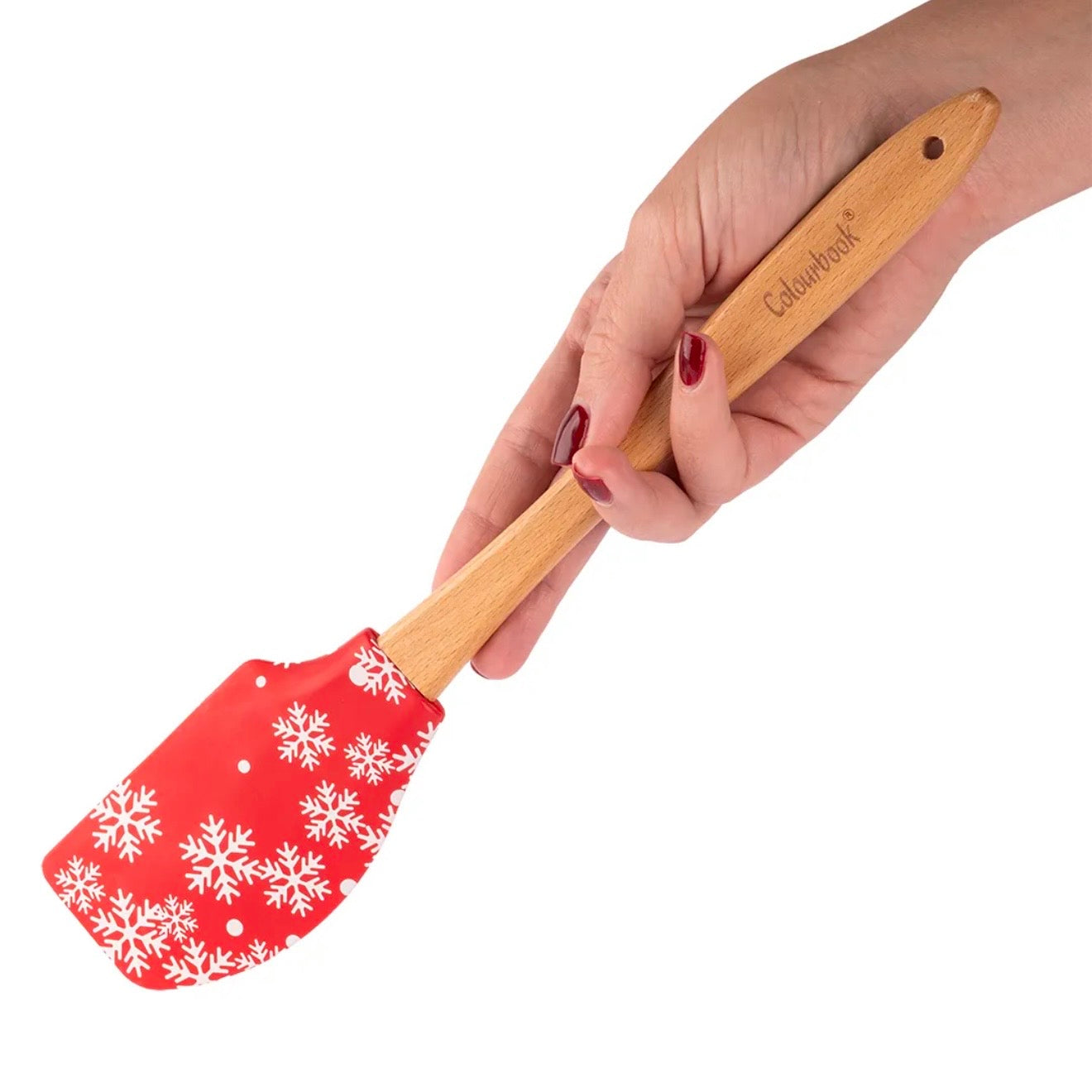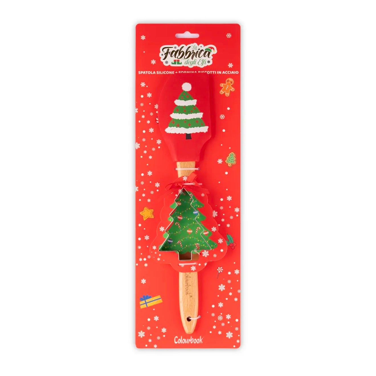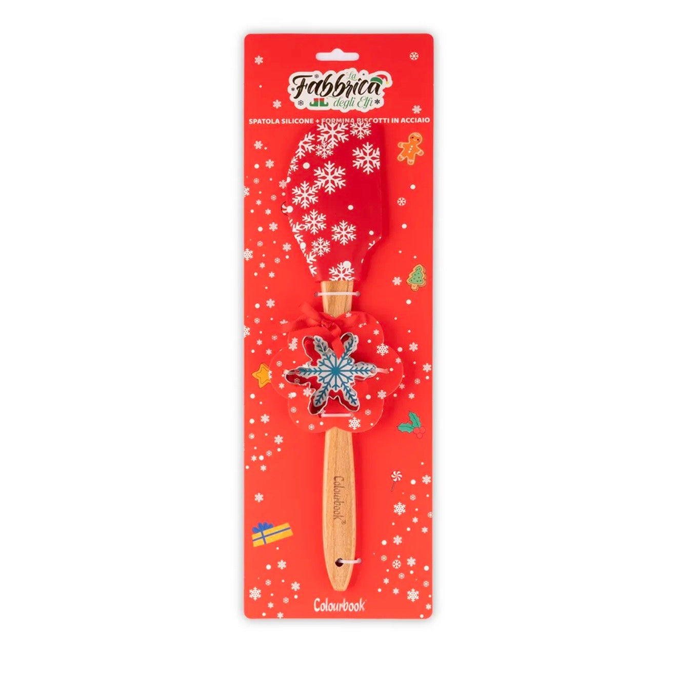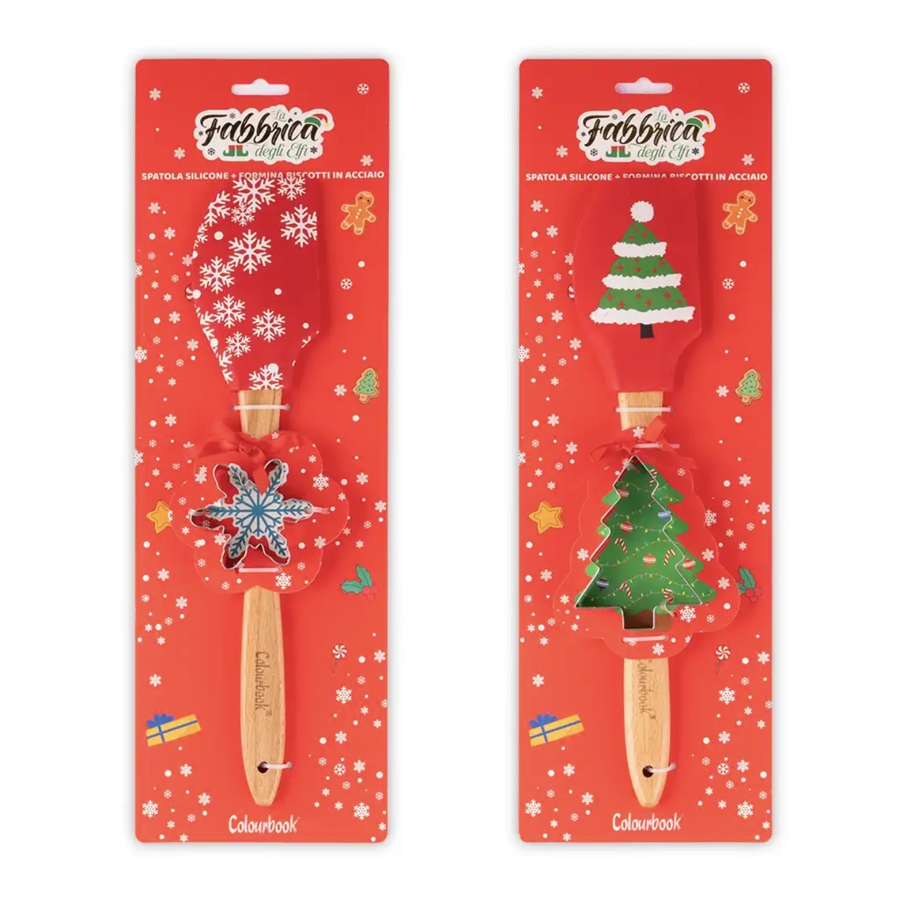 Realizzata in legno e silicone, la spatola da cucina misura 31 cm e include una formina per biscotti coordinata all’interno della confezione regalo.