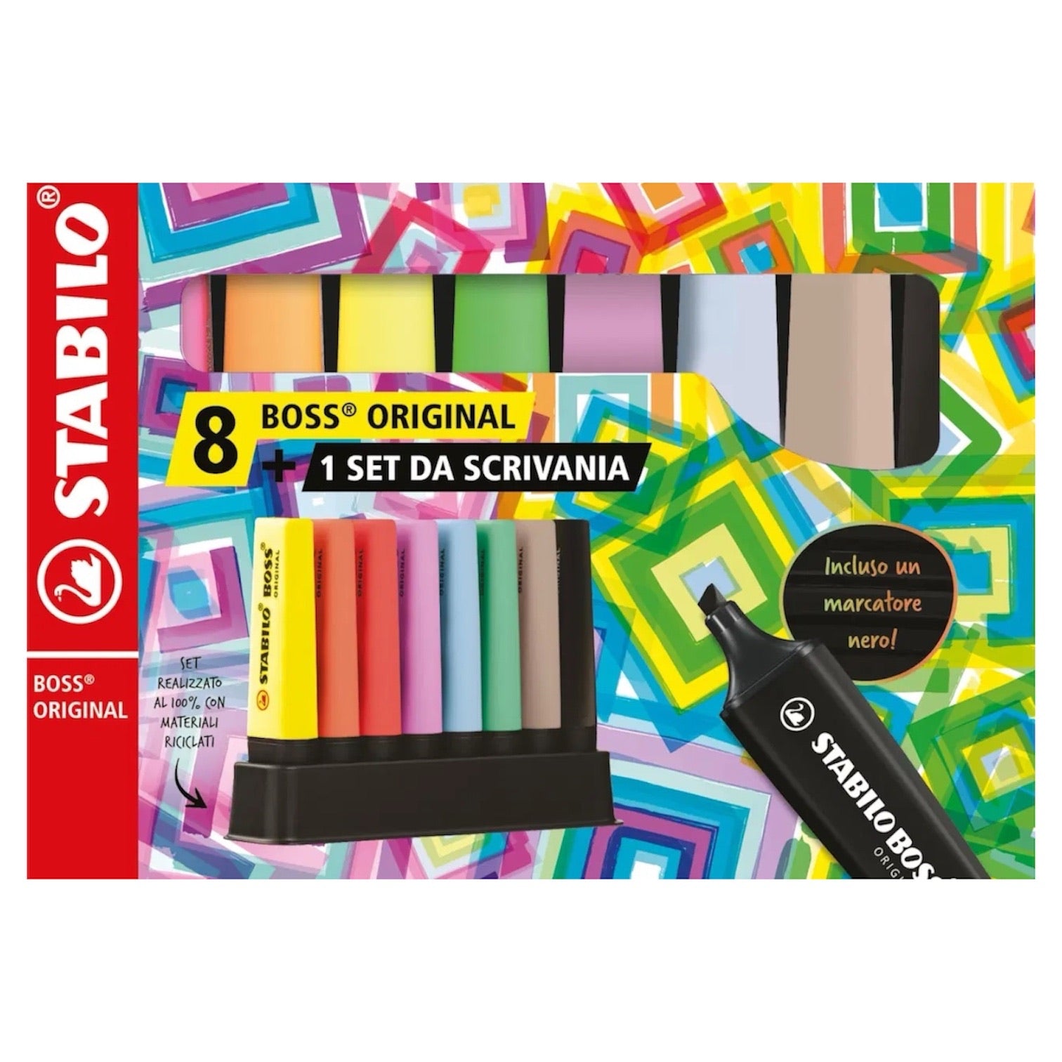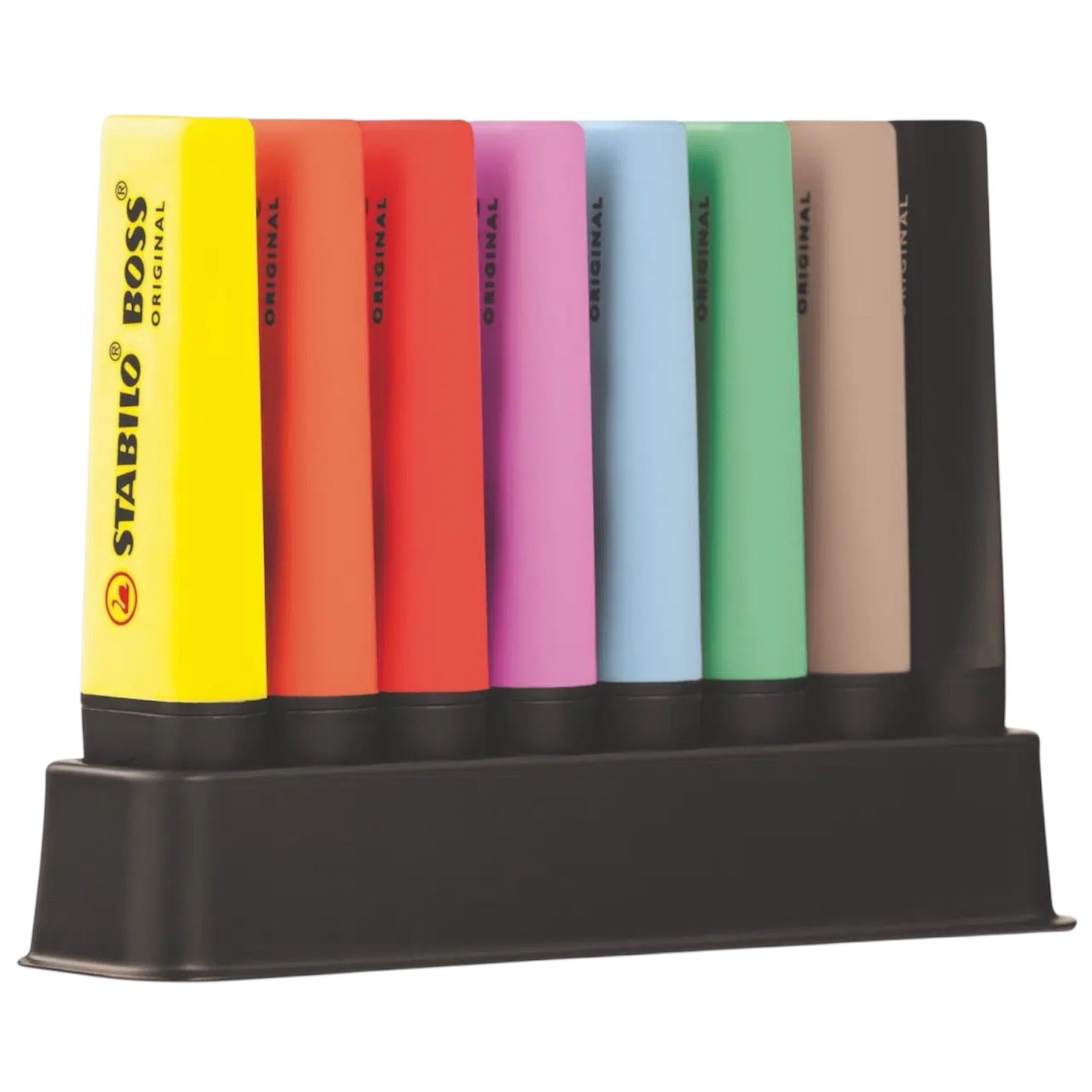 L'evidenziatore STABILO BOSS ORIGINAL in un comodo set da scrivania. Con 8 STABILO BOSS: 1 marcatore nero, 1 colore ispirato alla natura, 2 fluo e 4 Pastel.