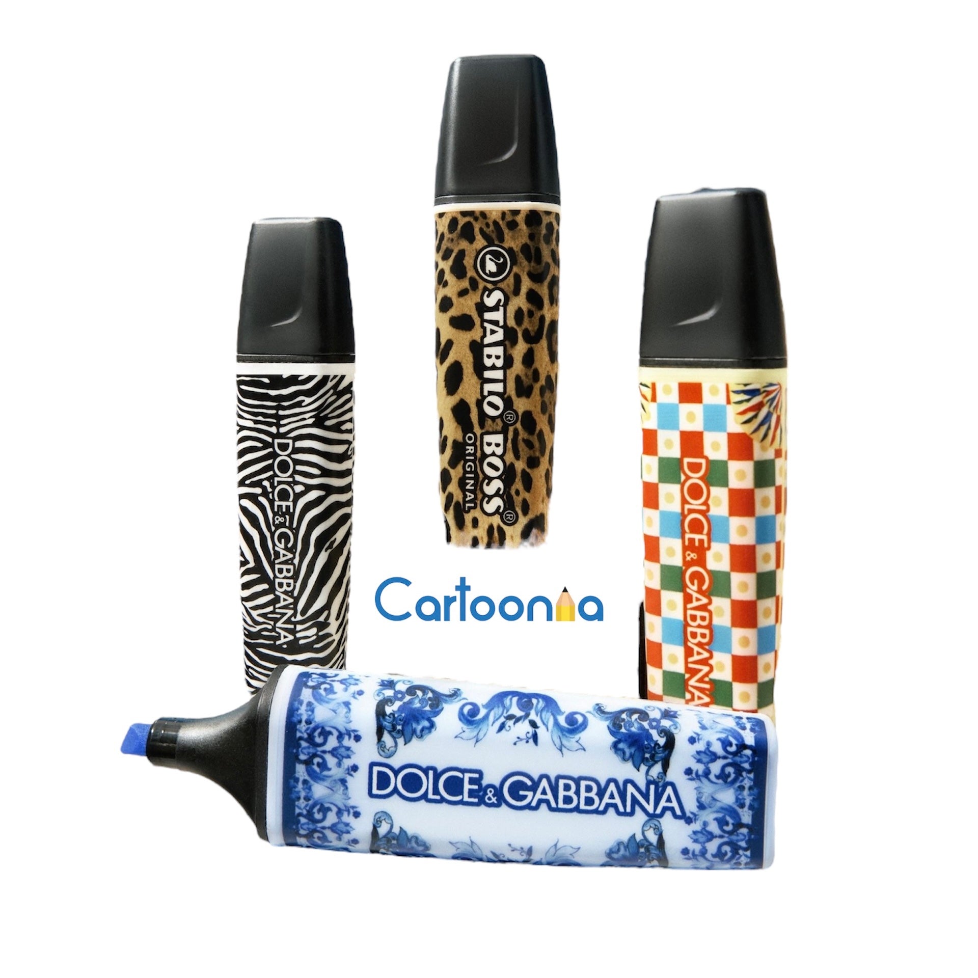 Per questa esclusiva collezione sono state scelte quattro colorazioni che richiamano alcune delle fantasie più iconiche di Dolce&Gabbana: l’allegria dei decori della tradizione siciliana caratterizza l’evidenziatore Stabilo Boss Original nella colorazione Milky Yellow, l’anima graffiante e decisa del Leopardo caratterizza la tinta Beige, mentre il bianco e nero della stampa Zebra e le maioliche Blu Mediterraneo decorano rispettivamente i modelli Black e Cloudy Blue.