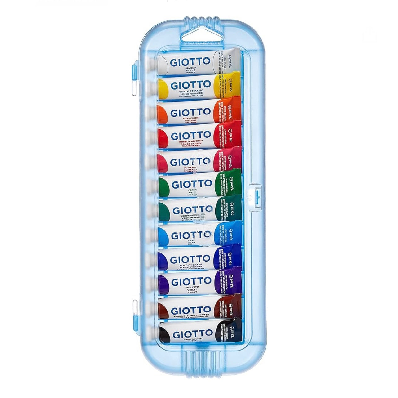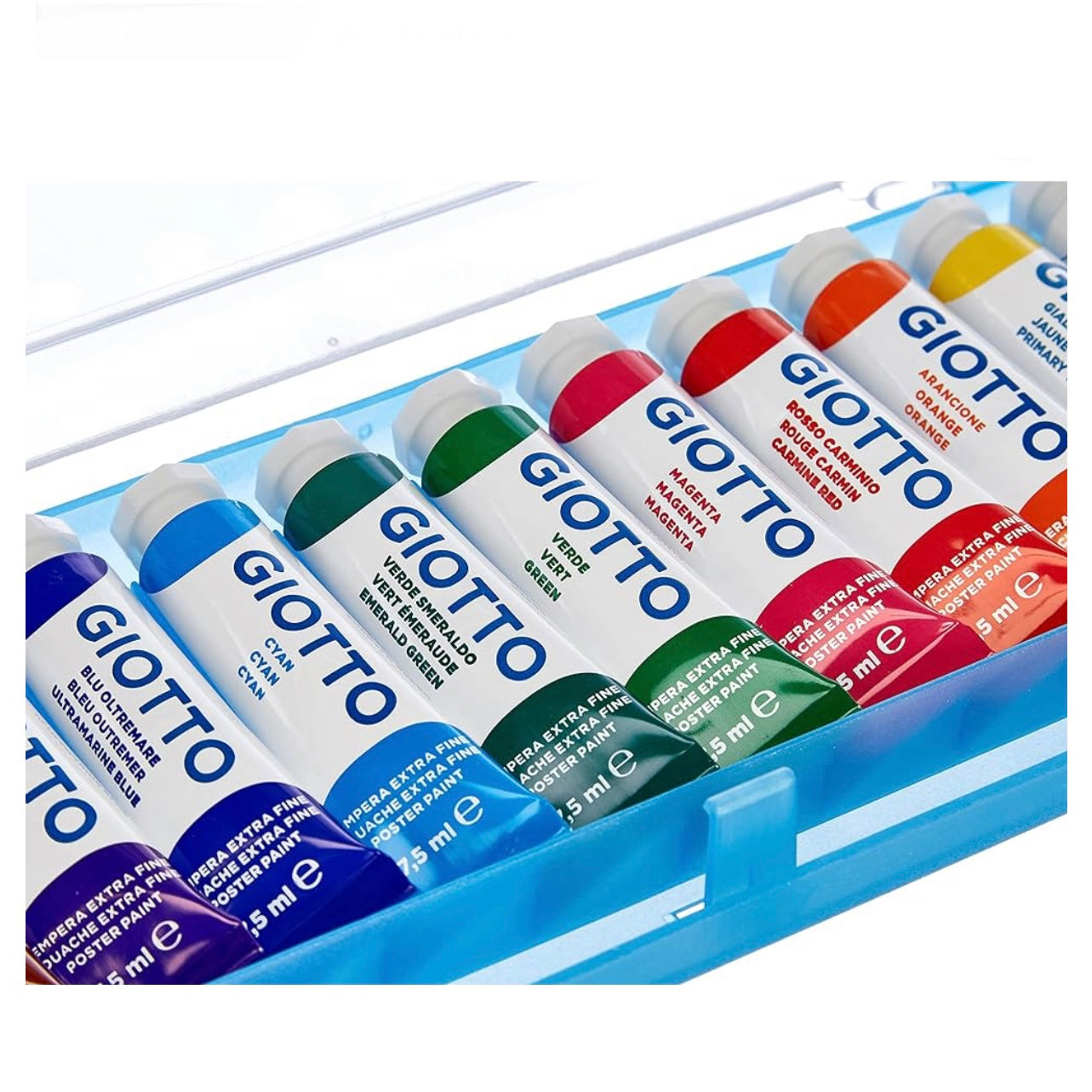 Tempera in tubetto riservata a caratteri decisi e ultracreativi! Prodotta con pigmenti di qualità superiore, che conferiscono ai colori luminosità ed elevato potere coprente, la tempera ultrafine concentrata Giotto è ideale per lavori di illustrazione e per chi in pittura non conosce limiti… Densa e coprente, ma anche diluibile con acqua fino ad ottenere effetti di trasparenza, è miscelabile per ottenere infinite sfumature. Le nuove confezioni assortite, con pennello incluso, sono dotate di una tavolozza estraibile dal coperchio e di vaschette laterali estraibili per l’acqua o per preparare le mescole. Tutto per la massima praticità e pulizia!