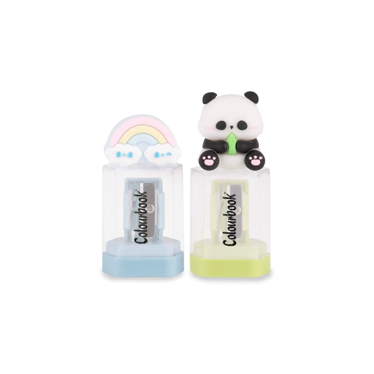Scopri i temperini Sharpy di Colourbook con adorabili topper gommati a forma di arcobaleno e panda! Con un foro da 3,3 mm, sono ideali per temperare matite con precisione.