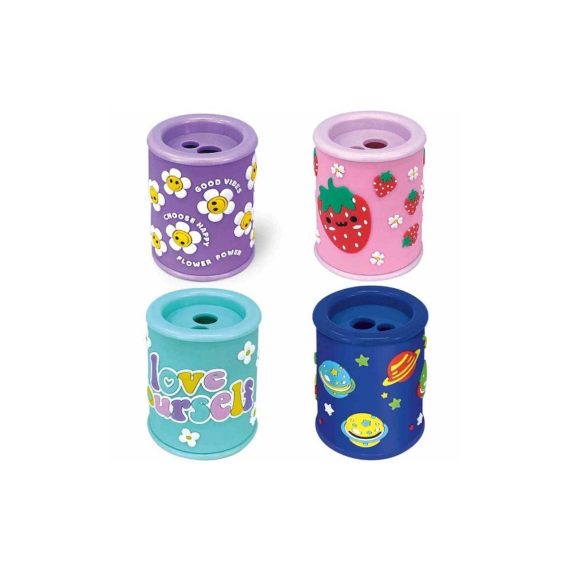 Temperamatite in gomma doppio foro con serbatoio.