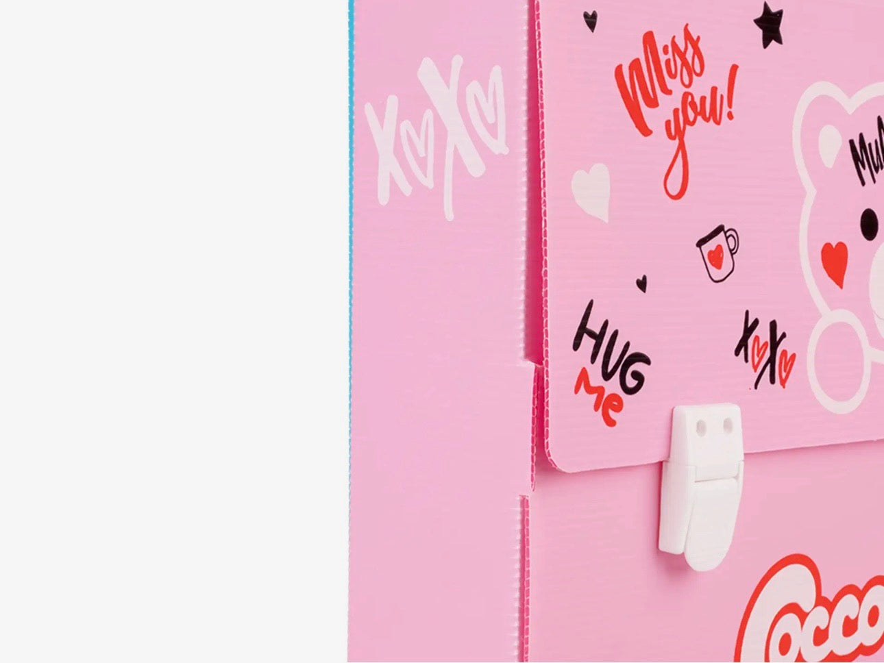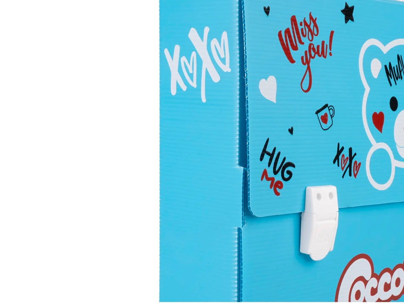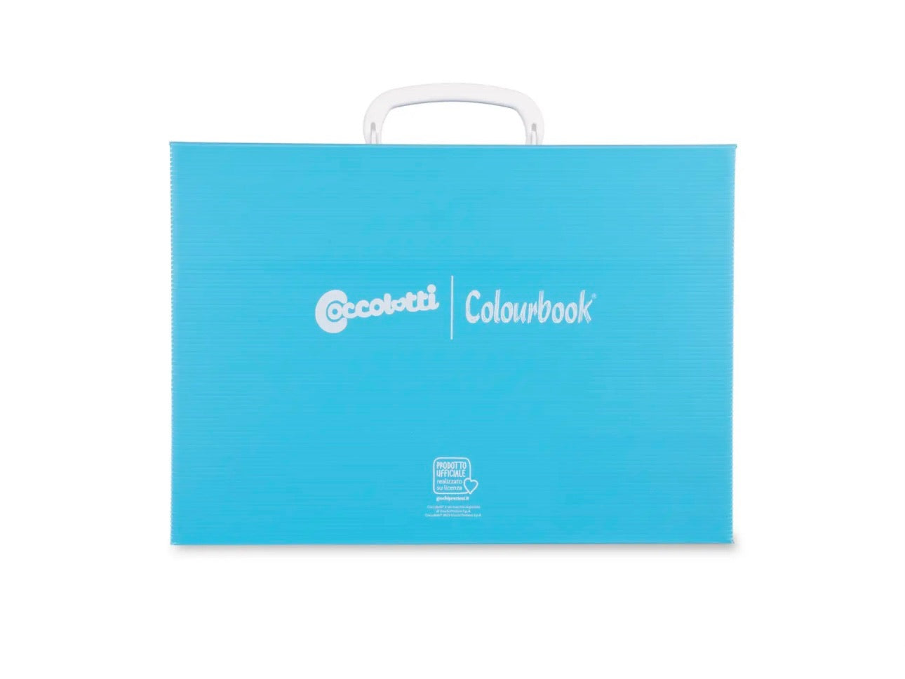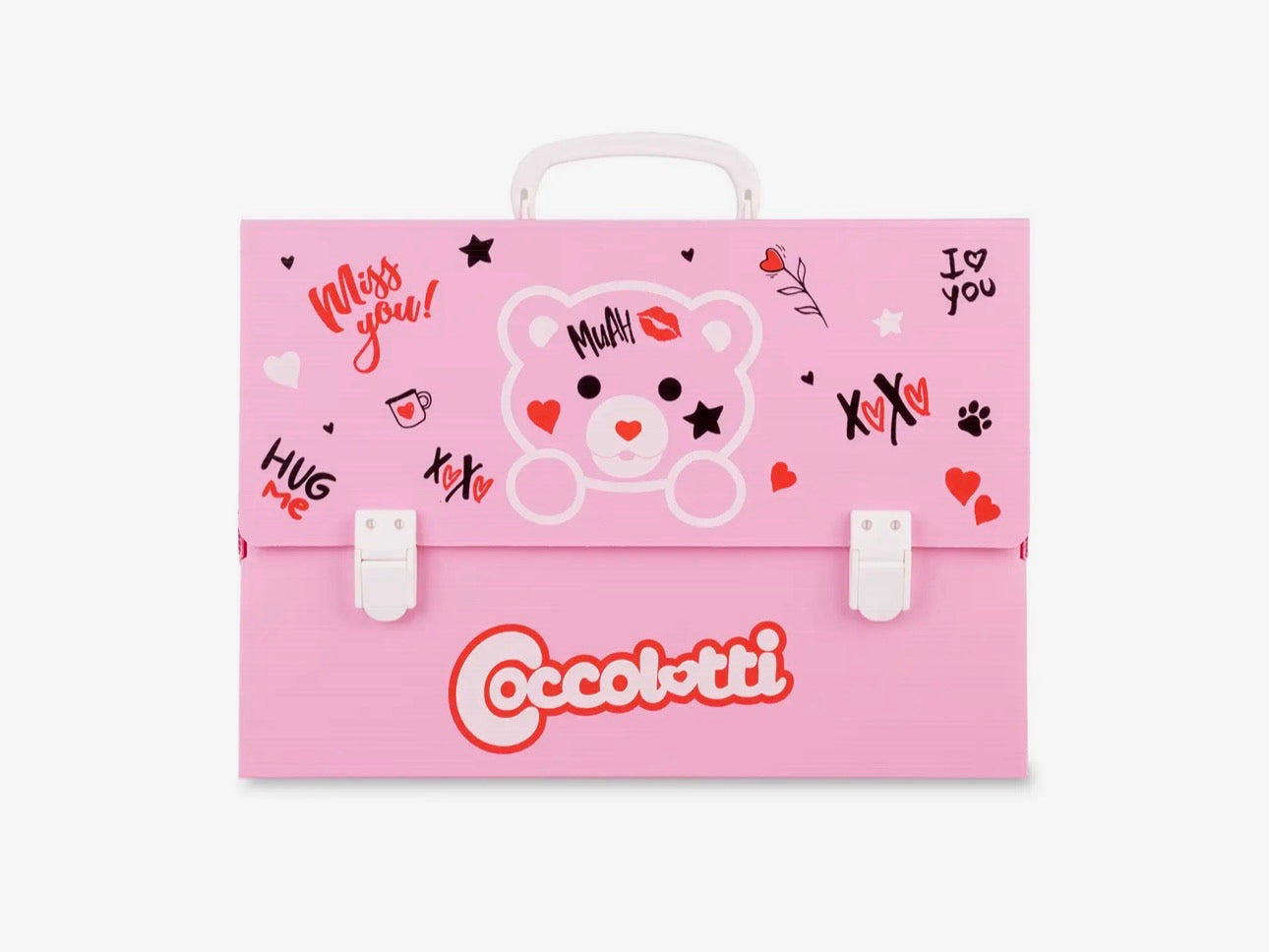 La valigetta portadisegni Coccolotti by Colourbook è un concentrato di tenerezza, grazie agli orsetti della collezione Love&Tell. Con dorso da 8 cm e decorata con le grafiche iconiche dei Coccolotti, la cartella tecnica è resistente e riesce a contenere tutti i disegni dell’anno scolastico. Manico e chiusure in bianco, prodotto interamente Made in Italy e realizzato su licenza ufficiale Giochi Preziosi.