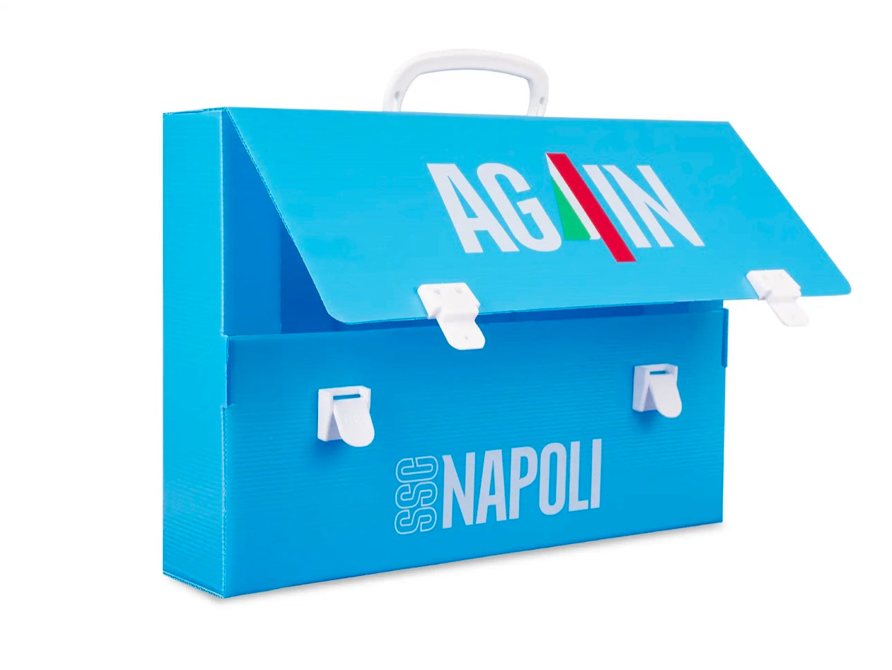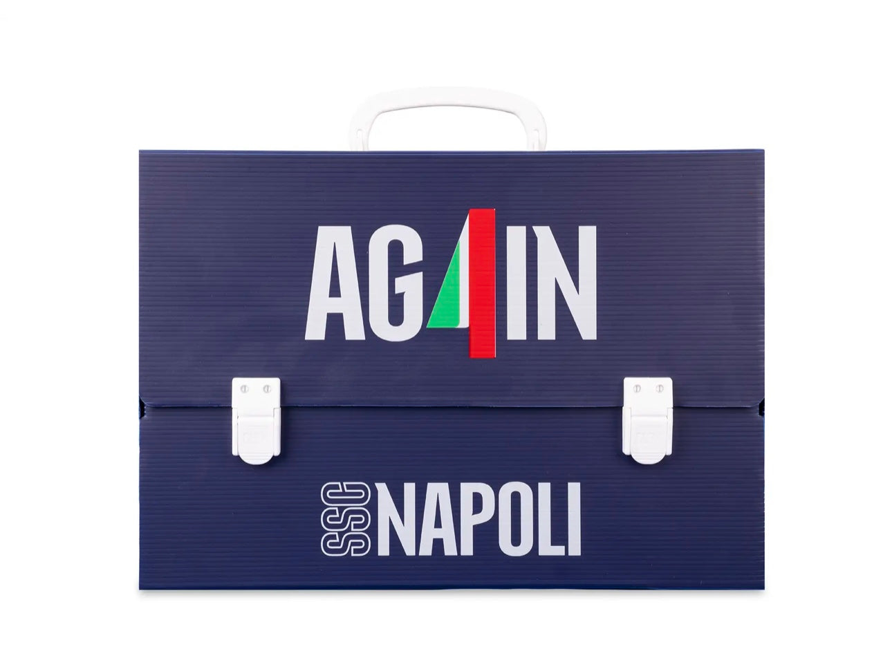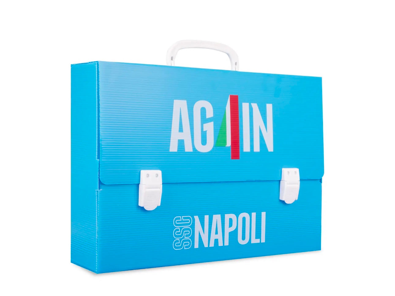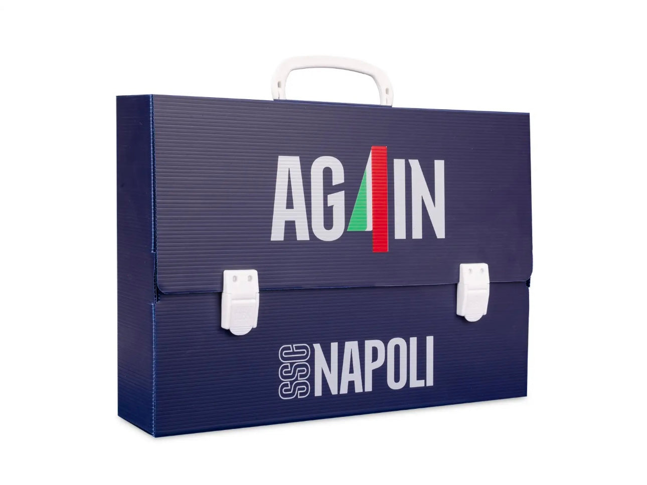 La valigetta scuola SSC Napoli by Colourbookdella collezione Again è la soluzione ideale per trasportare disegni, documenti e materiale scolastico in formato maxi. Con dorso da 8 cm, è ampia e funzionale, arricchita da due grafiche ufficiali della collezione dedicata al quarto scudetto degli Azzurri. Sul retro spicca il logo SSC Napoli stampato, per portare sempre con te l’orgoglio azzurro. Leggera, pratica e realizzata interamente in Italia, è perfetta per la scuola ma anche per chi studia arte o architettura.