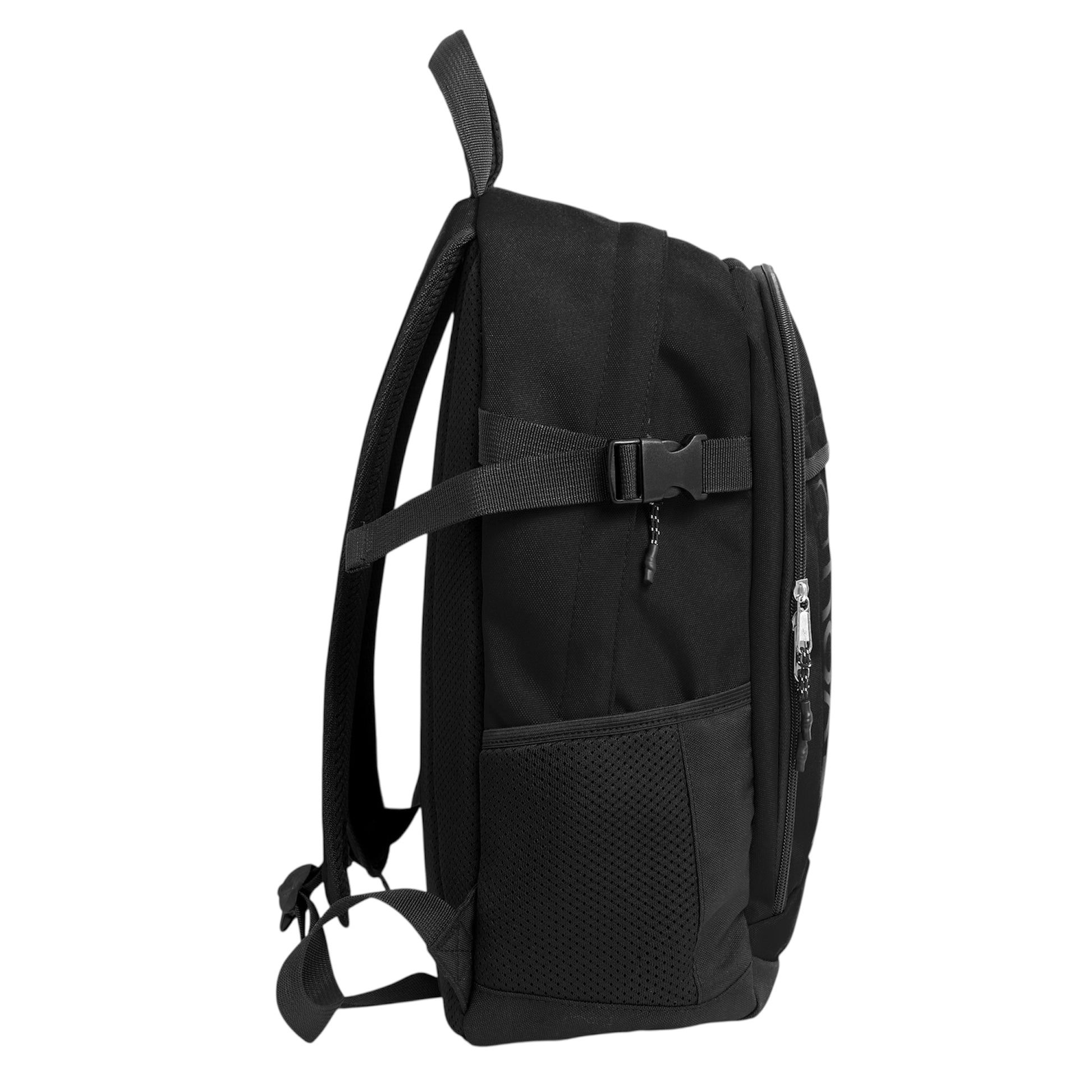 : Uno zaino in tessuto poliestere con tasca laterale porta