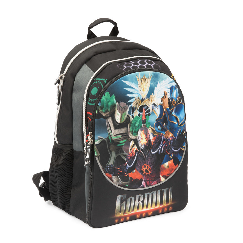 Con questo zaino, il tuo bambino sarà sempre pronto per ogni avventura scolastica! Realizzato in poliestere resistente, offre comfort grazie agli spallacci ergonomici imbottiti e al supporto del schienale EVA. La tasca frontale removibile e double face permette di cambiare grafica ogni giorno, con opzioni dedicate ai Gormiti e ai Scion. Le tasche laterali e frontali aiutano a organizzare al meglio gli strumenti scolastici. Praticità e resistenza sono garantite dalla maniglia in tessuto e dalla robusta cerniera centrale.