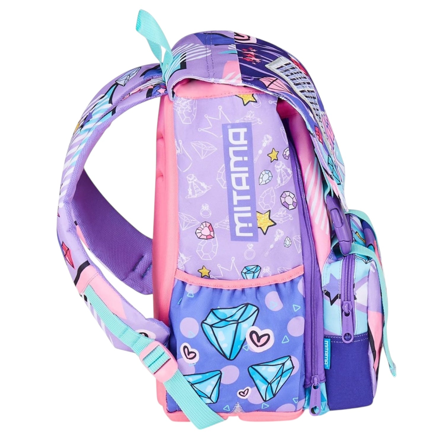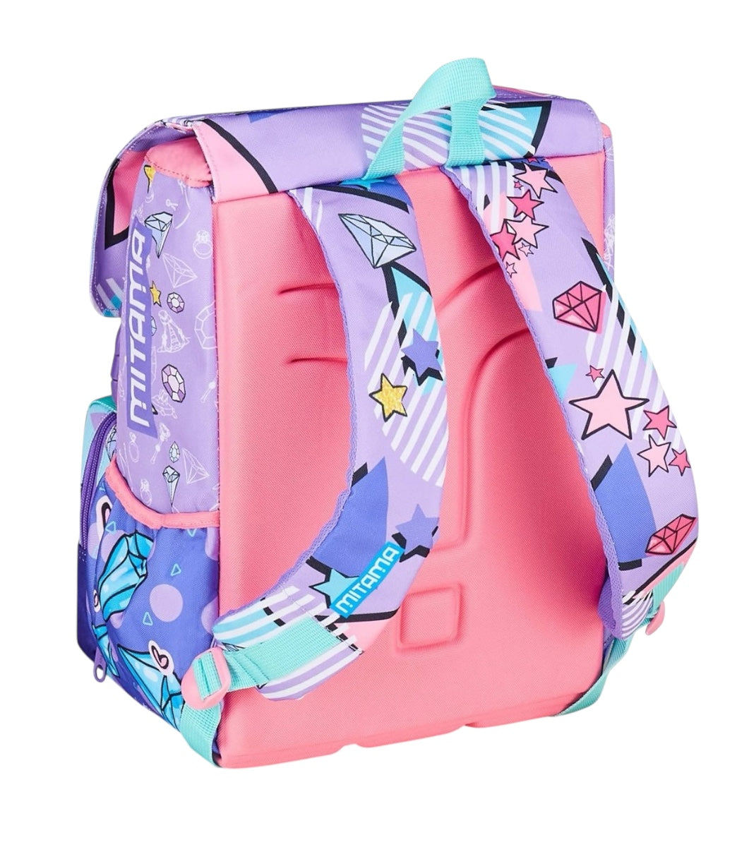 - Altre caratteristiche: Zaino Triplo scomparto con schienale robusto. La posizione degli spallacci, brevettata da Mitama, mantiene lo zaino più alto facendo aderire perfettamente alla schiena dello studente, anche durante il movimento.