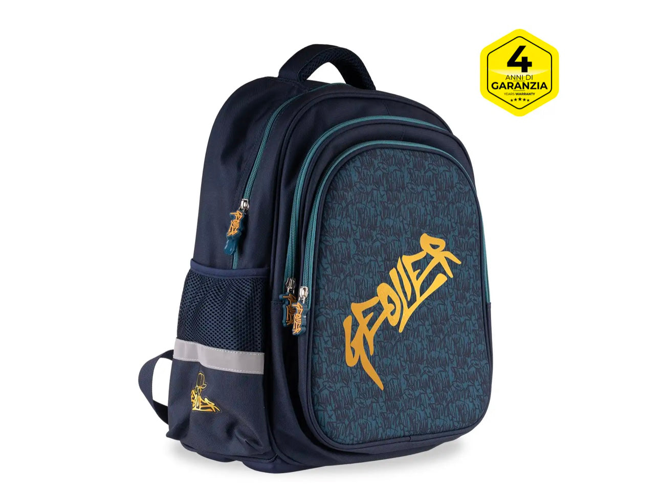 Lo zaino è capiente, ricco di tasche e spazi interni per libri, quaderni, astuccio e diario; tasche laterali dove riporre borracce, ombrelli e cuffie. Eh si, perchè con la nuova collezione Geolier by Colourbook, le sorprese non finiscono mai: in ogni zaino troverai, in omaggio, le cuffie in-ear Geolier in regalo!